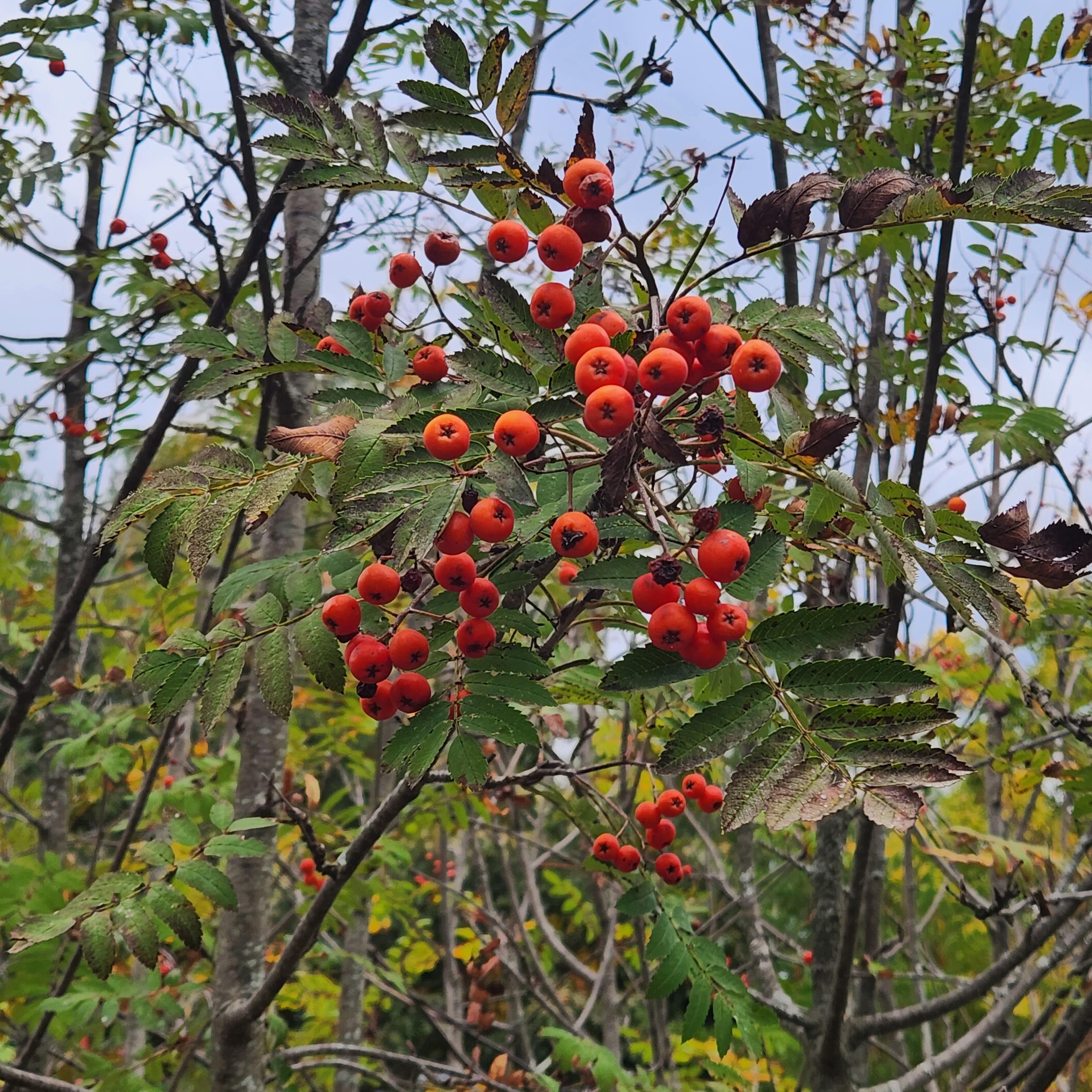 American Mountain-Ash (Sorbus americana) is a quiet dweller of Pennsylvania’s northern woodlands, offering both ecological nourishment and seasonal grace. In the Allegheny Plateau and Appalachian Mountains, this small deciduous tree finds its home in cool, moist forests and rocky slopes. With its feathered compound leaves and clusters of creamy white flowers, moutain-ash blends into the understory until autumn, when its brilliant red-orange berries blaze against the fading green. Though often mistaken for true ashes, it belongs to the rose family, and its presence signals a forest still intact — acidic soils, clean air, and a rhythm untouched by urban sprawl. In Pennsylvania’s mixed hardwood forests, the American mountain-ash plays a vital role in sustaining wildlife. Its berries ripen in late summer and persist into winter, feeding cedar waxwings, robins, and ruffed grouse long after other fruits have fallen. Black bears and small mammals forage its fruit, while deer browse its twigs and foliage. The tree’s blossoms attract native pollinators, and its open crown allows light to reach the forest floor, supporting a layered community of ferns, mosses, and shade-tolerant herbs. Though vulnerable to fireblight, habitat fragmentation, and the stresses of drought and heat, mountain-ash endures in Pennsylvania’s cooler elevations, where its decline has prompted calls for habitat protection and ecological recognition. Valued in restoration not only for its wildlife support but for its beautiful seasonal presence , the American mountain-ash offers more than function — it is a threshold tree, feeding birds, signaling frost, and reminding those who walk with poetic eyes that beauty and nourishment often come in small, unassuming forms.