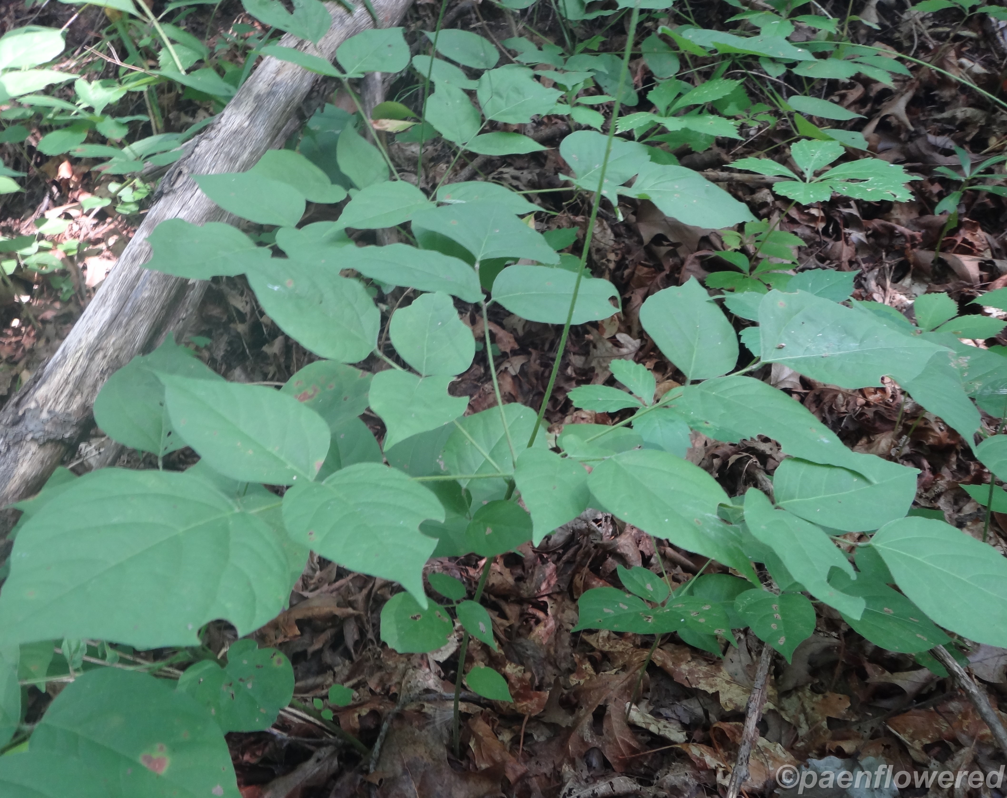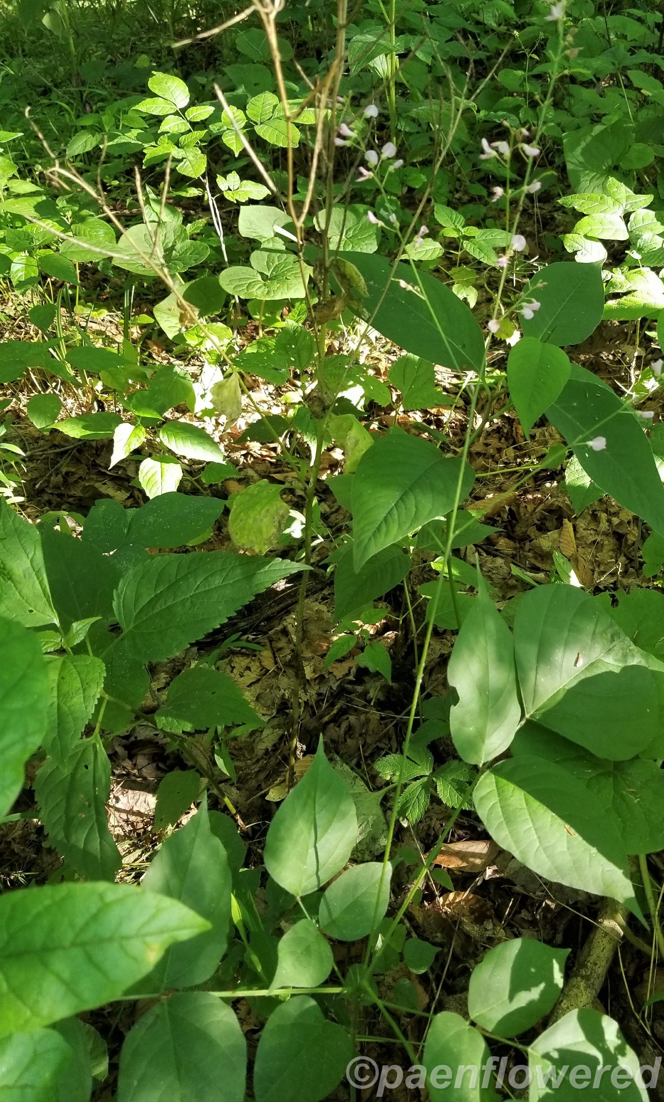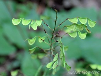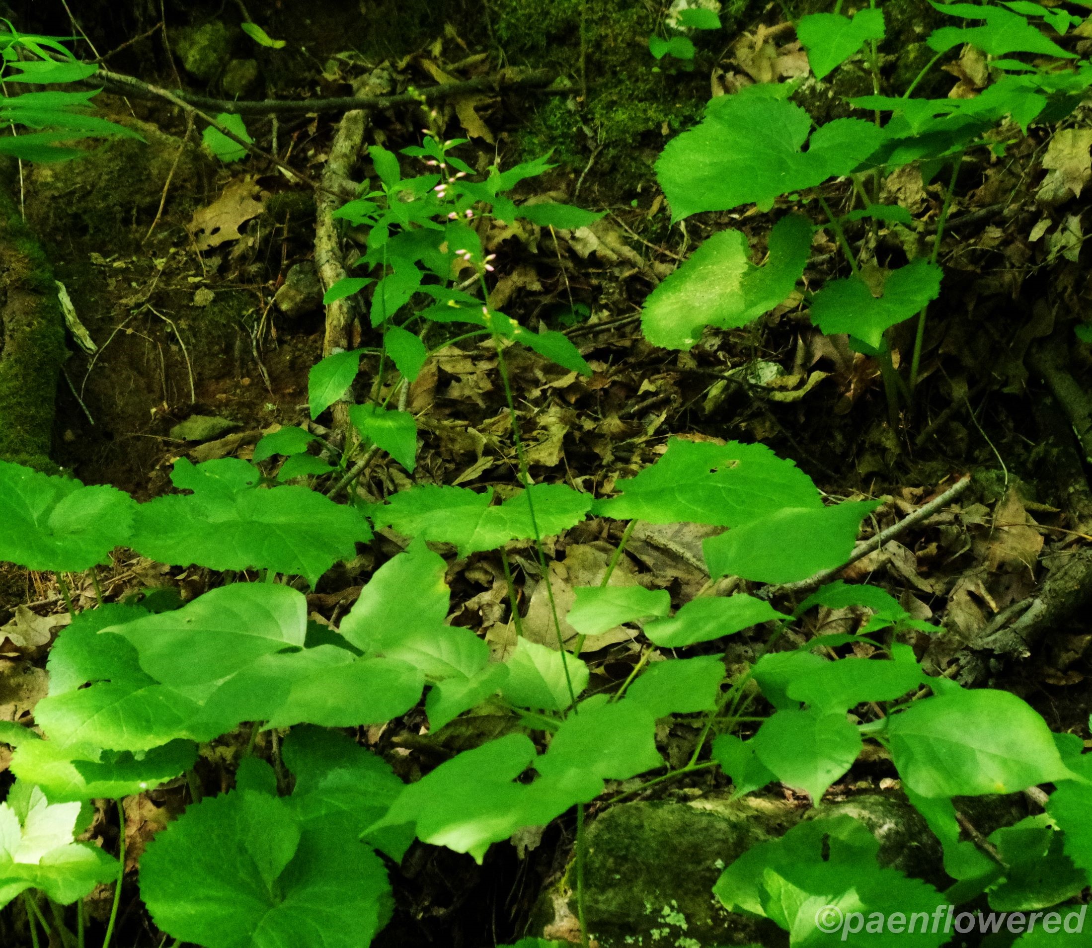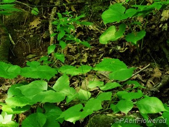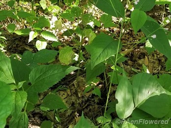 Leaves are clustered beneath the inflorescence, which is borne on the same stem.