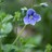 The flowers are only 0.4 inches wide, but actually have one of the larger flowers of the speedwell group. The flowers have the 4 petals that are typical of Speedwells with the lower petal smaller than the others. They are sky blue in color with darker stripes and a white center. Sometimes the lower petal will be lighter in color than the other three or even white. The flowers occur individually on long slender stalks that grow from the leaf axils. It blooms from late winter until early summer. The dry fruit is heart-shaped with two widely separated lobes. Each fruit contains 5-10 small seeds.