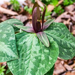 Trilliums are rhizomatous perennial herbs with a single unbranched stem and a whorl of 3 leaf-like bracts on top of stem just below the solitray flower. The flower has 3 green sepals and 3 colored petals. The latin name of the genus 'Trillium' refers to the plants being 3-parted - 3 leaves/bracts, 3 petals, and 3 sepals.