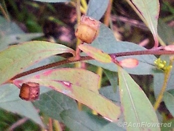 The flower petals of the Seedbox only stay on the plant for a day. Only the four bracts and the fertilized ovary remain