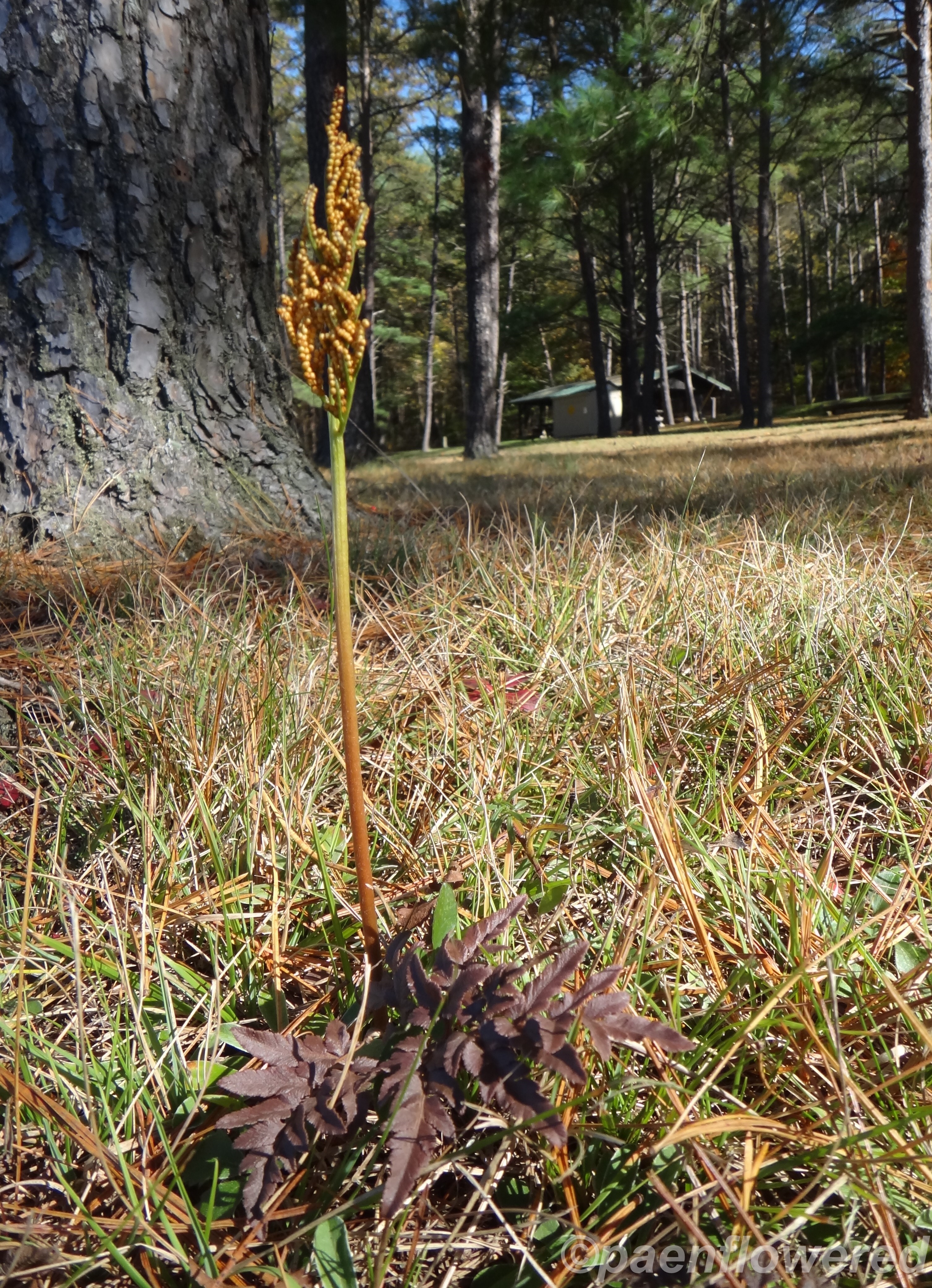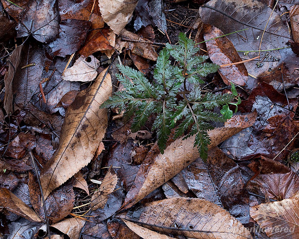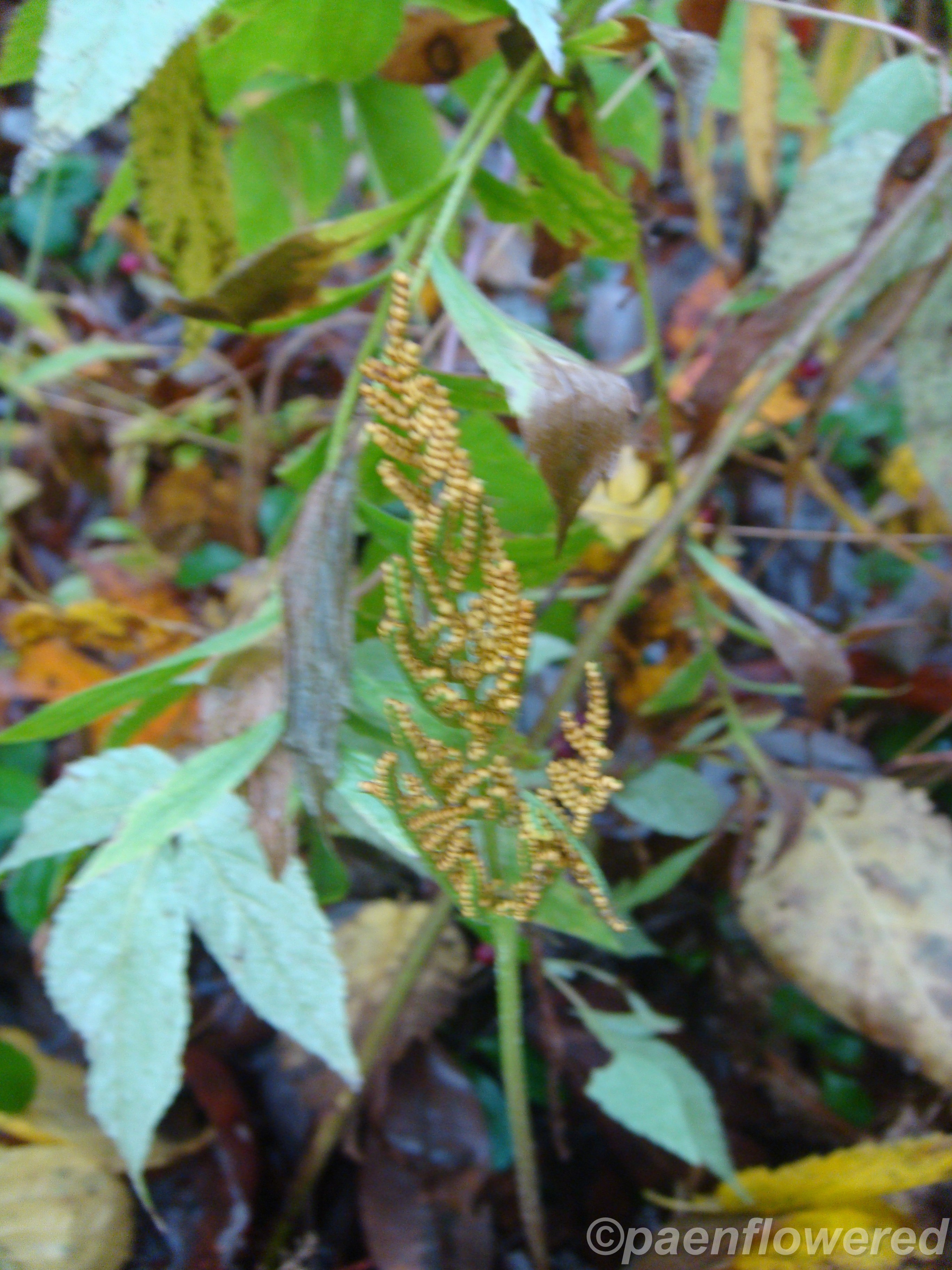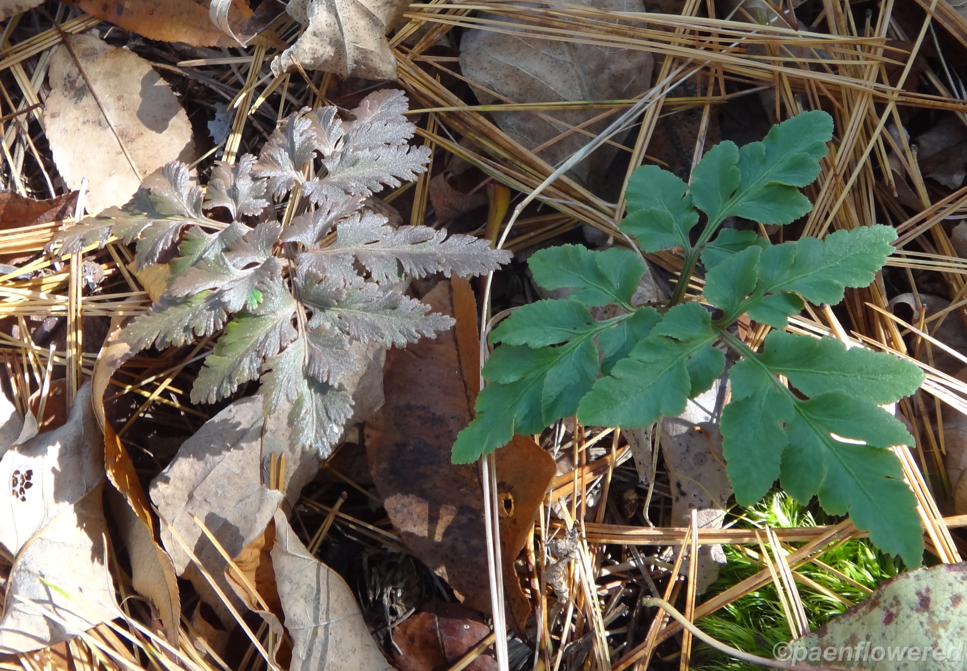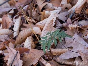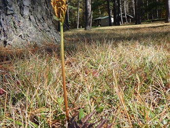 A typical oblique form (forma obliquum) of dissected grape fern in mid-autumn