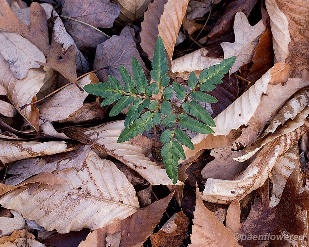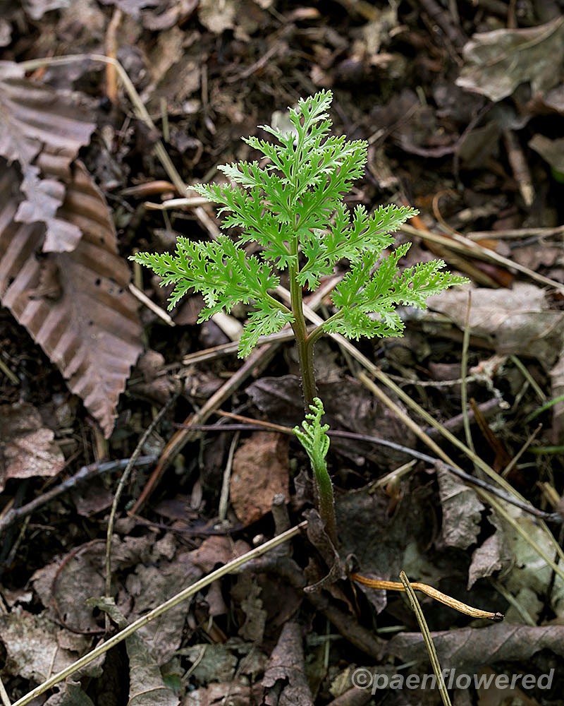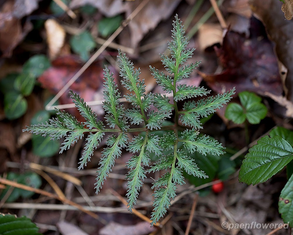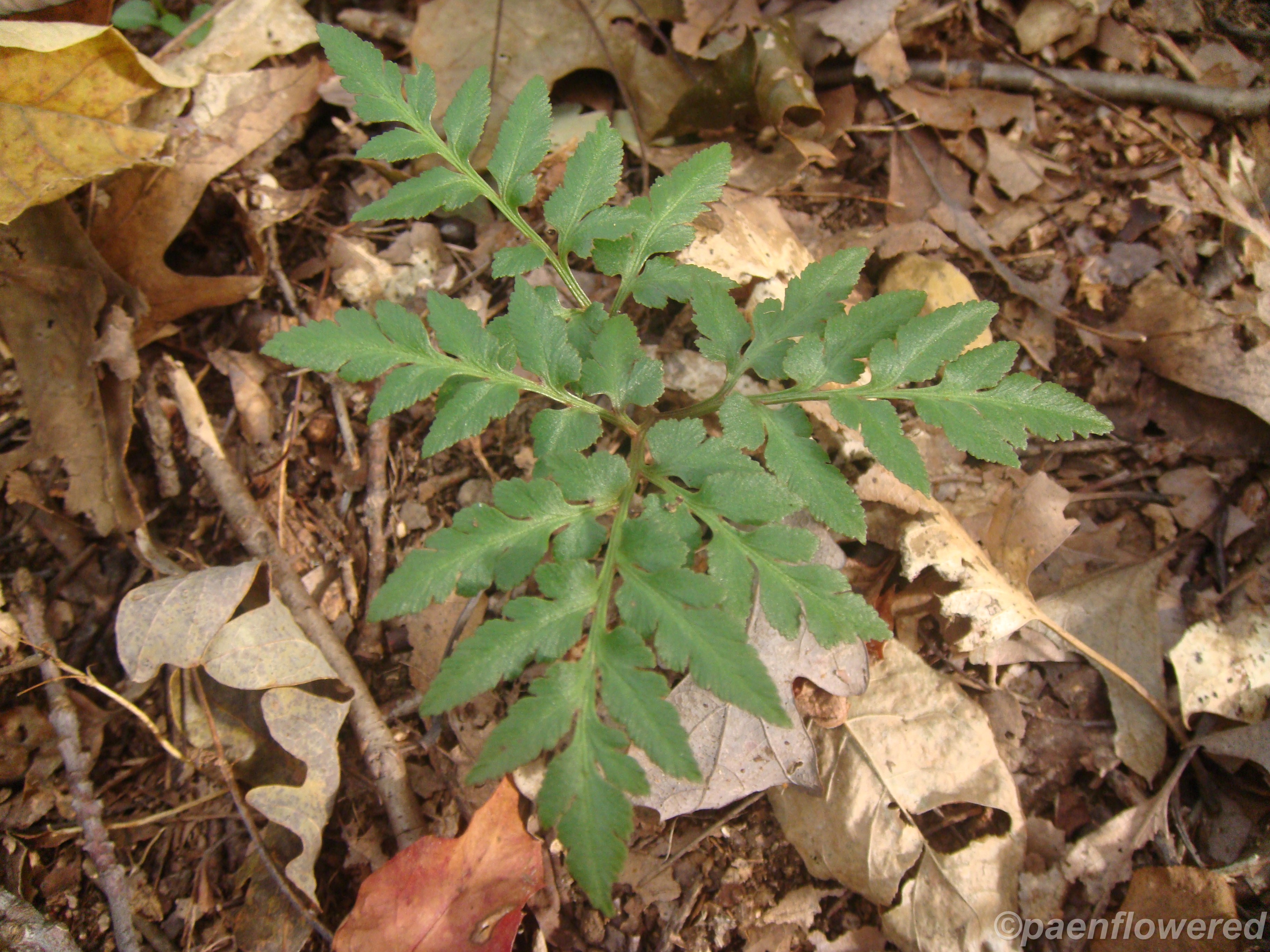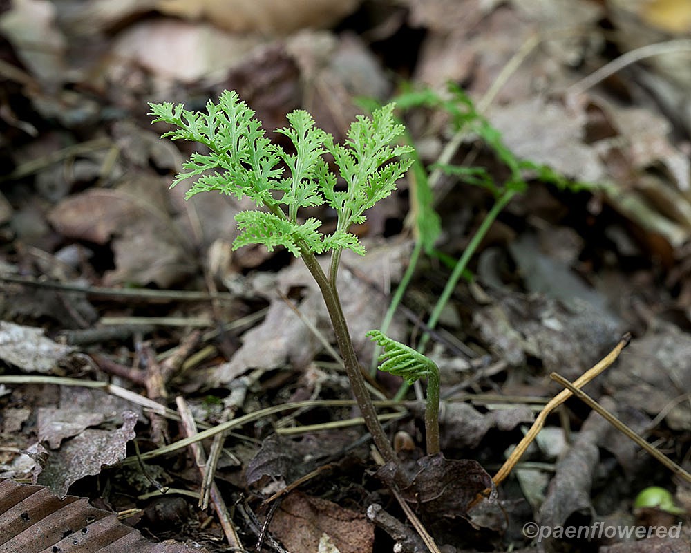 A typical oblique form (forma obliquum) of dissected grape fern in mid-autumn