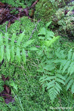 Feathery fern of wet, acidic places, with narrow pinnae.