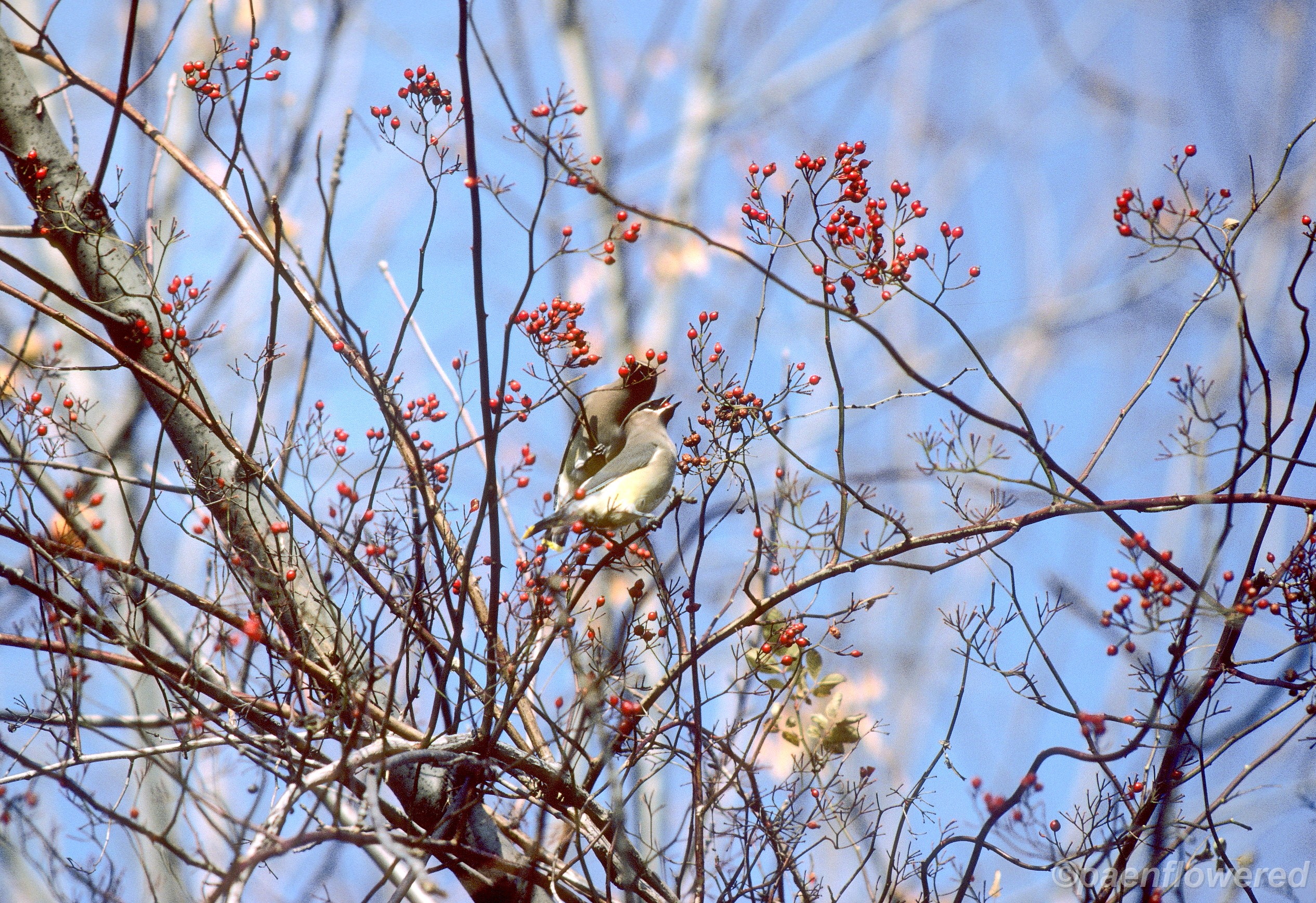 Berries are eaten by Cedar Waxwings.